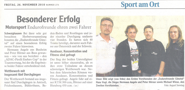 Bericht MM-Zeitung über H. Angele und P. Hörner ADAC-Pirelli Enduro Cup 2010