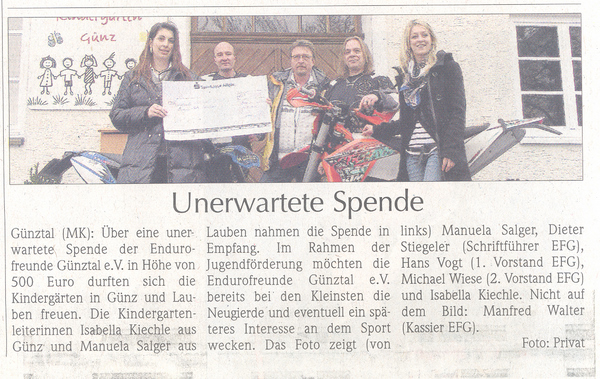 Bericht MM-Zeitung über Spende der EFG an Kindergarten Günz und Lauben